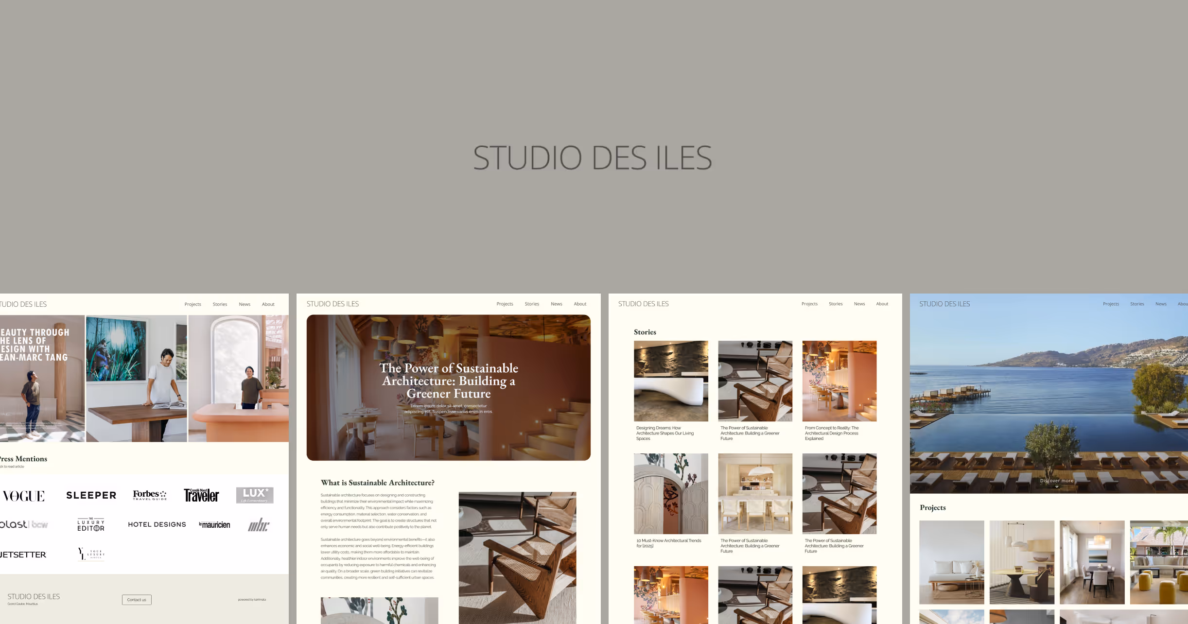 We partnered with Kanimata, led by Franck Dacosta, for this project. The architect, Jean-Marc, wanted to create a website that reflected his own vision. He founded STUDIO DES ILES, a space where he could blend his personal heritage with professional expertise.
